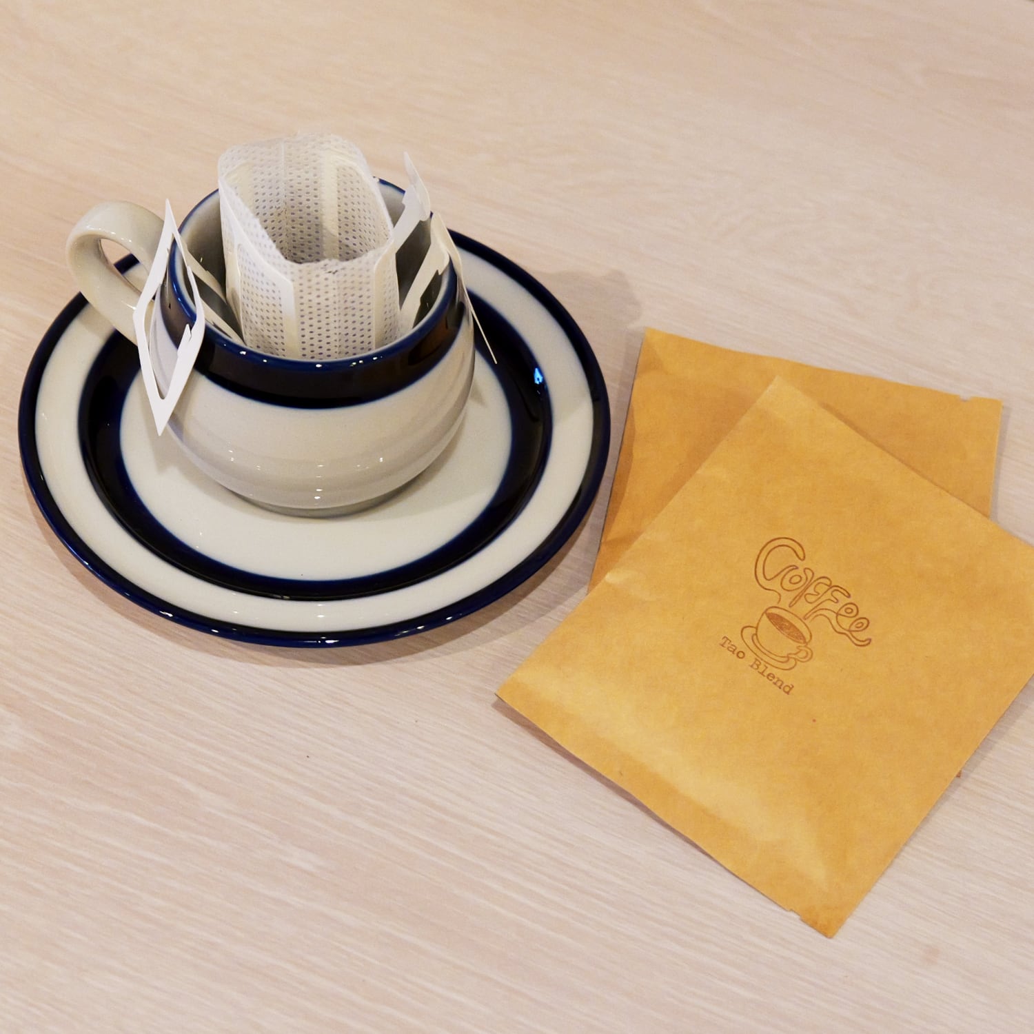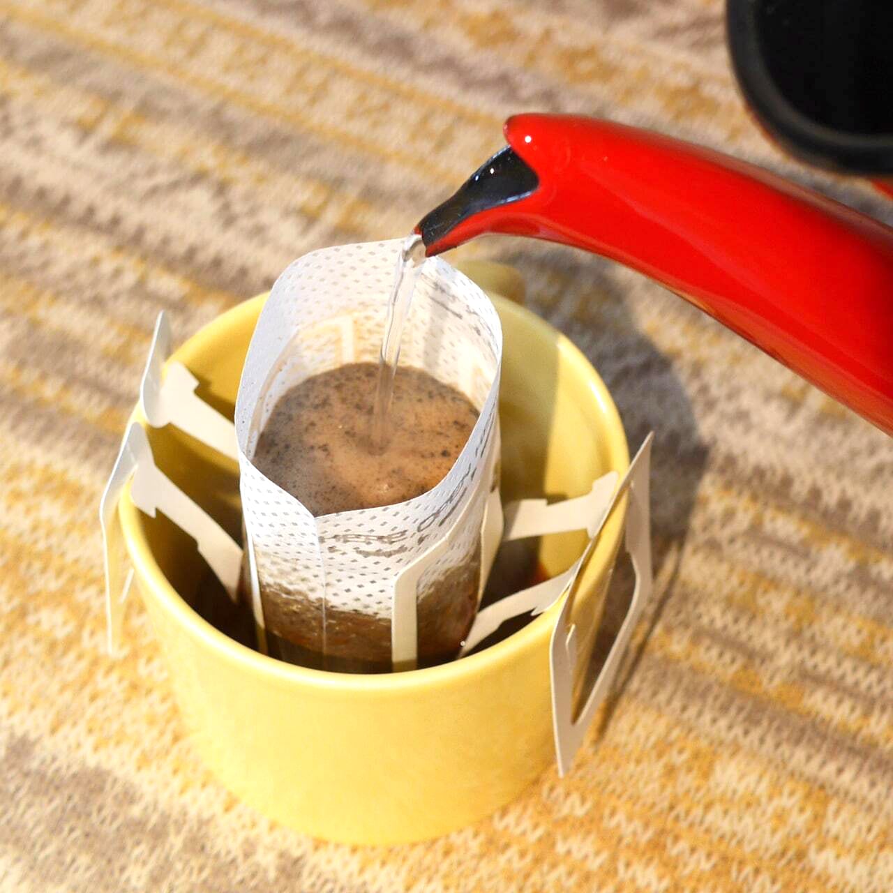 バッグをカップの上にセットしてお湯を注ぐだけ。